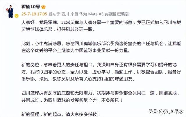 四川男籃副總經(jīng)理霍楠更新社媒,不僅打破自己已經(jīng)離開(kāi)四川男籃俱樂(lè)部的傳聞,也對(duì)網(wǎng)絡(luò)上涉及四川男籃深陷欠薪等事宜做出點(diǎn)評(píng)。